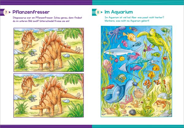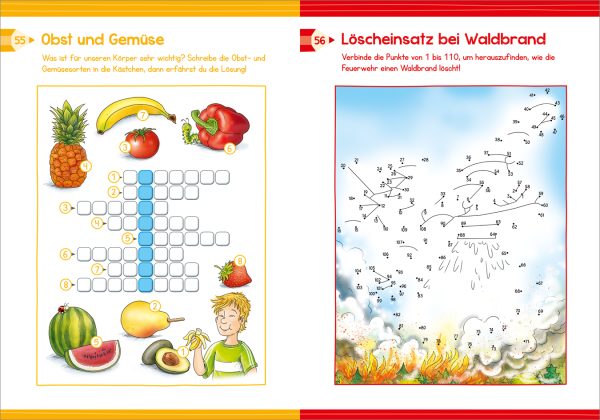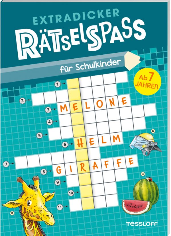 Welche Dinosaurier verstecken sich im Gitterrätsel? Welche Frucht und welches Blatt gehören zu welchem Baum? Welchen Weg muss die Nervenzelle durch das Synapsen-Labyrinth nehmen, um eine Botschaft an das Gehirn zu senden? Die vielfältigen Knobeleien und Kopfnüsse in diesem extradicken Rätselspaß bringen die grauen Zellen von Schulkindern ab 7 Jahren ordentlich auf Trapp. Ob Natur und Tiere, Feuerwehr und Dinosaurier oder menschlicher Körper – die vielfältige Themenauswahl bietet altersgerechte Inhalte und sorgt für eine gelungene Abwechslung vom Schulalltag. Super Nebeneffekt: Die bunte Mischung mit von-Punkt-zu-Punkt-, Kreuzwort- oder Zahlenrätseln, Aufgaben zu Unterschieden, Paaren oder Bildausschnitten sowie vielen weiteren Ratespielen schult Konzentrationsvermögen und logisches Denken der kleinen Rätselfans.