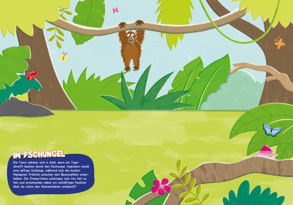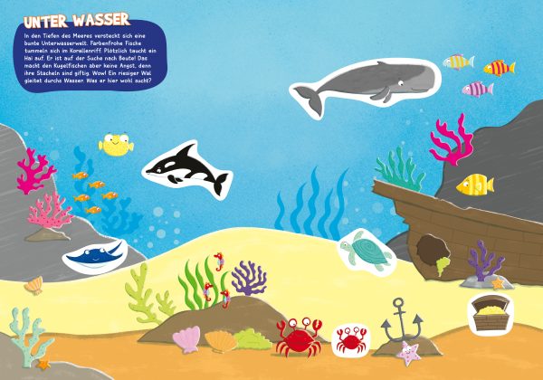 13 landschaftliche Kulissen können mit bunten Stickern kreativ gestaltet werden. In der Savanne fehlen Giraffen, Nilpferd, Löwe und viele andere Tiere. Im Dschungel sorgen die Sticker dafür, dass sich ein Faultier vom Ast hangeln kann und der Tiger auf die nächste Beute lauert. Auch die heimischen Tiere sind dabei! Im Wald dürfen Eichhörnchen Füchse, Schnecken, Igel und Hasen eingestickert werden. Über 250 Sticker können beliebig in die Landschaften eingeklebt werden. Das regt die Fantasie der Kinder an und schult ihre Feinmotorik. Für Kinder ab 5 Jahren!