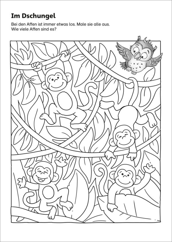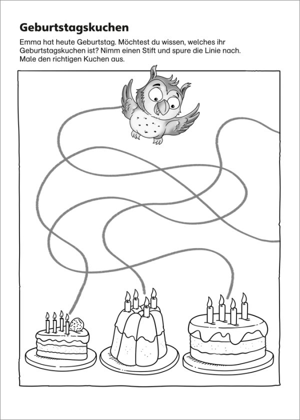 Die drei schlauen Eulenkinder Emma, Elsa und Ella führen aufgeweckte Kindergartenkinder durch ein Buch voller spannender Rätsel und Aufgaben. Welches Tier gehört nicht auf den Bauernhof, sondern in den Zoo? Wie viele Affen klettern im Baum? Wo findet das Mäuschen am schnellsten durch das Labyrinth? Die bunte Mischung aus Suchbildern, Ausmalseiten, Zählrätseln, Mandalas, Bildergeschichten und vielem mehr macht kleinen Ratefüchsen großen Spaß. Ganz nebenbei schulen Kinder ab 3 Jahren ihr Konzentrationsvermögen und lernen den Umgang mit Zahlen.