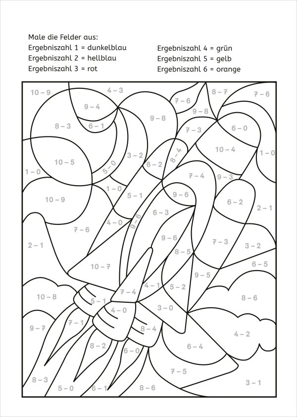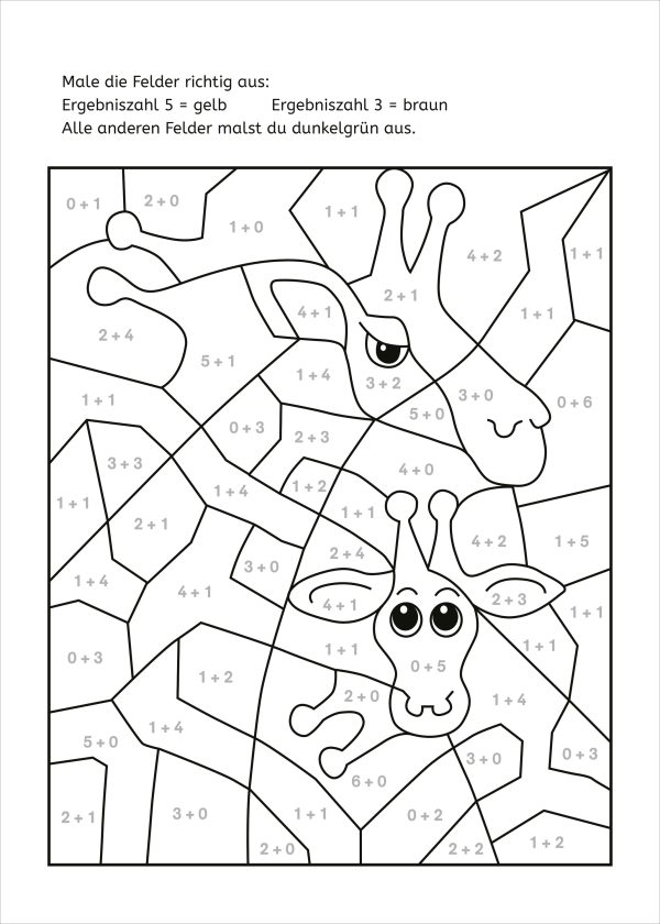 Mal- und Übungsspaß in einem! Auf jeder Seite des Malblocks wartet eine neue Überraschung auf die Kinder. Rechenaufgaben mit den Zahlen bis 10 geben vor, in welcher Farbe die Felder ausgemalt werden. So entstehen insgesamt 24 tolle, bunte Motive. Die fertigen Bilder können leicht aus dem Abreißblock herausgetrennt und anschließend aufgehängt oder verschenkt werden.