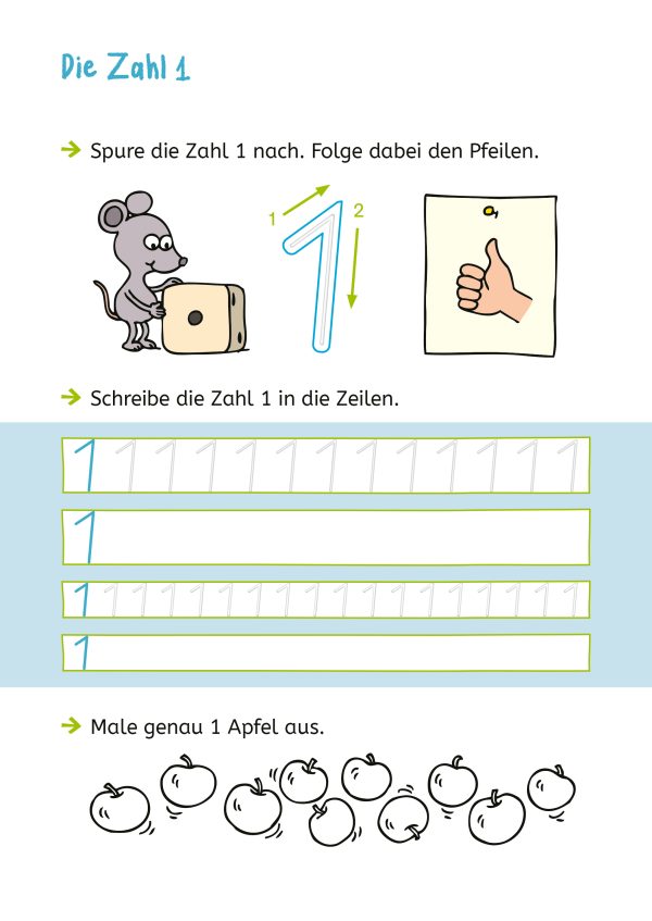 Zahlen schreiben jetzt ganz einfach! Die eingeprägten Spurrillen helfen den Kindern, mit dem Stift auf der Linie zu bleiben. Sie erleichtern den Einstieg in die gezielte Stiftführung und die Entwicklung einer sicheren Handschrift. Damit sich die Kinder die jeweilige Zahl gut einprägen können, gibt es zu jeder Zahl ein anschauliches Mengenbild und eine kleine Übung zur Mengenerfassung. Geeignet für Kinder ab 6 Jahren.