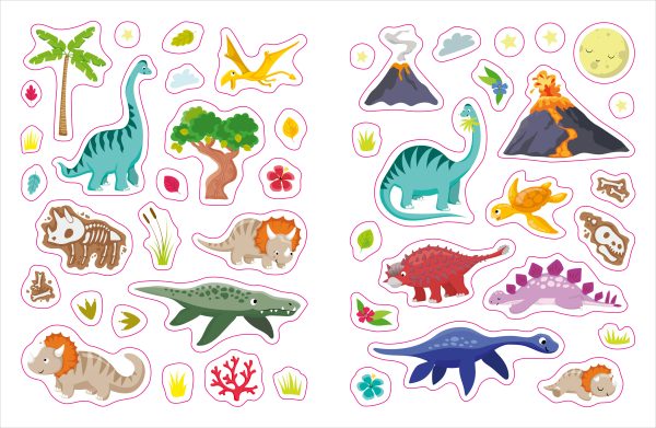 - Das Lieblingsthema Dinos erkunden die Kinder mit bunten Stickern selbst