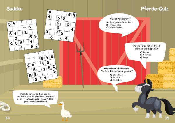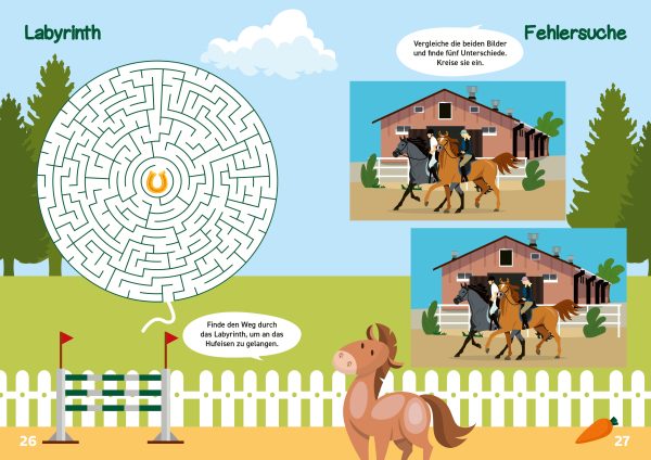 Mit der neuen Reihe von Rätselkönig Stefan Heine rätseln sich Kinder durch die Welt der Pferde. Jede Doppelseite zeigt die Tiere im Stall oder auf der Koppel oder und liefert die Grundlage für bunte Rätsel. 48 Seiten und 10 Rätselarten sorgen für Unterhaltung und Abwechslung. Welche Zahlen gehören in die Pyramide? Welche Weg führt das Pferd zum Apfel? Welche Unterschiede sind auf den Suchbildern zu finden? Alles gelöst? Mit dem Lösungsteil am Ende des Heftes können Kinder ihre Ergebnisse ganz einfach selbst kontrollieren. Ein tolles Geschenk für Kinder ab 8 Jahren.