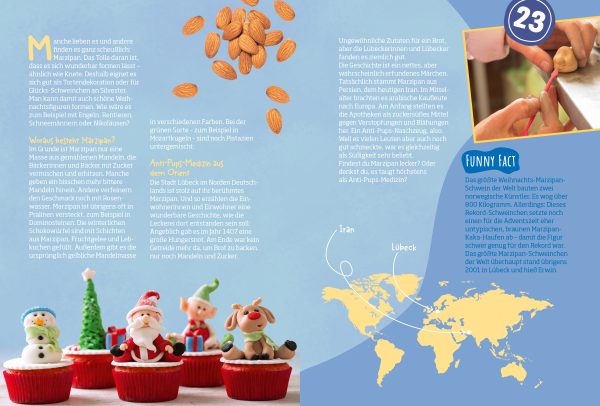 Bestens vorbereitet auf die Weihnachtszeit. Das Adventskalenderbuch liefert spannende Fakten, verblüffende Weihnachtsrekorde und tolle Basteltipps. Jeden Tag wird eine Doppelseite aufgetrennt und gestaunt. Woher kommt die Schokolade und wie entstehen daraus die Schoko-Weihnachtsmänner? Wo wachsen die Weihnachtsbäume und finden Schlittenhunde ihren Job eingentlich auch so cool wie wir? Für alle Bastelfans liefern wir Anleitungen für Baumschmuck aus Naturmaterialien, Weihnachtskarten und Kerzen aus Wachsresten. Ein Rezept für leckere Plätzchen darf natürlich auch nicht fehlen. Das macht Spaß und lässt die Wartezeit auf das Weihnachtsfest wie im Flug vergehen. Ein abwechslungsreiches Buch für die ganze Familie!