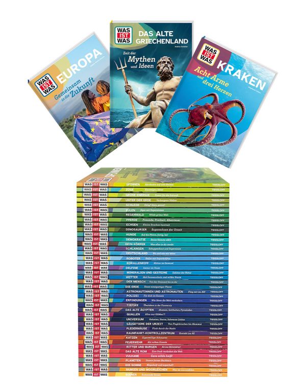 Enthalten sind 44 Bände der Reihe WAS IST WAS Das Original mit vielen Fotos, Illustrationen und Infokästen für Kinder ab 8 Jahren.