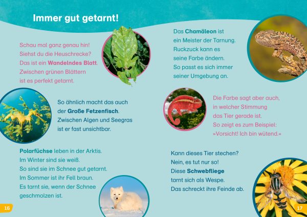 Baumeister, Verwandlungskünstler oder Superhirne: Die Tierwelt ist voll mit und cleveren Tieren. Da gibt es Oktopusse, die Schraubgläser öffnen können, Elefanten, die ihre Artgenossen nach Jahren am Geruch wiedererkennen oder Heuschrecken, die kaum von Blättern zu unterscheiden sind. Die genialen Tricks und Kniffe zahlreicher Tiere lernen Leseanfängerinnen und Leseanfänger in diesem Buch kennen. Die extragroße Schrift, ein leichter Satzbau und viele bunte Bilder und Illustrationen sorgen für viel Spaß beim Lesen üben. Am Ende jedes Kapitels wartet ein Lesequiz auf die Kinder. Ein spannendes Sachbuch für die Lesestufe 1. Geeignet für Grundschulkinder ab der 1. Klasse.