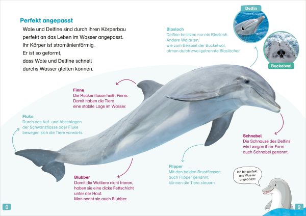 Rund 90 verschiedene Walarten leben in den Ozeanen. Der riesige Pottwal taucht bis zu einem Kilometer tief, um seine Lieblingsspeise zu erbeuten. Buckelwale singen oft über Stunden ihre Lieder und Delfine geben sich Namen. Diese und viele weitere spannende Fakten können sich Kinder selbst erlesen. WAS IST WAS Erstes Lesen liefert die perfekte Grundlage, um flüssig lesen zu lernen. Delfin Fini führt die Kinder durch das Buch und liefert viele erstaunliche Informationen aus dem Leben der Wale und Delfine. Mit einem Lesequiz am Ende jedes Kapitels können die Kinder spielerisch ihr Wissen testen. Geeignet für die Lesestufe 2 und alle Kinder, die Wale und Delfine toll finden.
