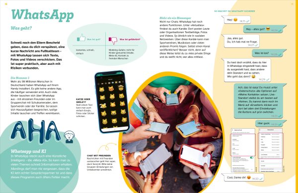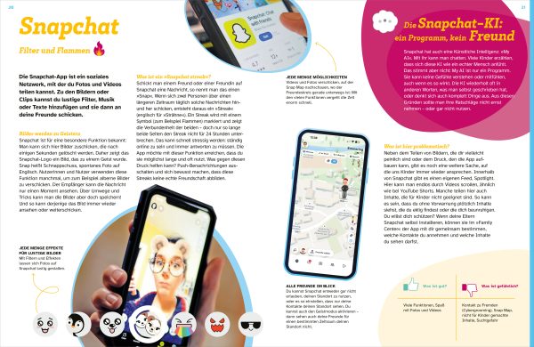 Das Buch greift solche Situationen auf und ordnet sie ein. Es erklärt, wie Apps, Spiele und soziale Plattformen aufgebaut sind und welche Themen rund um Smartphones und digitale Medien im Alltag von Kindern auftauchen können – zum Beispiel Klassenchats, Bildschirmzeiten, Spiele oder das Teilen von Bildern und Nachrichten.