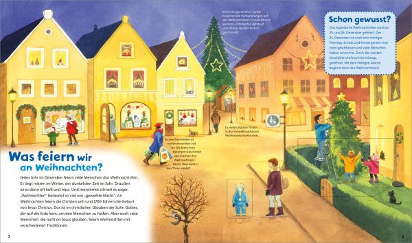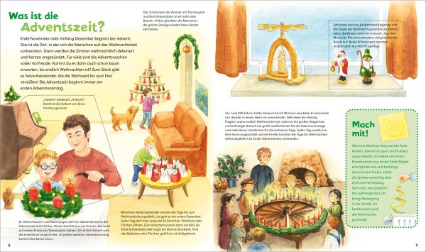 Adventskalender, Plätzchenduft und Weihnachtsmärkte: Ab jetzt liegt die Vorfreude auf Weihnachten in der Luft! Doch was wird am Heiligen Abend gefeiert? Wer war der Bischof Nikolaus und was erzählt die Weihnachtsgeschichte? Detailreiche, informative Illustrationen und kurze, kindgerechte Texte erläutern Weihnachtsbräuche von Advent bis Dreikönig. Hinter den Entdeckerklappen verbergen sich kleine Überraschungen. Infokästen liefern unglaubliche Fakten und spannendes Wissen: was die Weihnachtskrippe bedeutet, warum es an Weihnachten Geschenke gibt und auch, wie in anderen Ländern Weihnachten gefeiert wird. So begleitet das Buch Kinder von 4 bis 7 Jahren durch die Adventszeit und steigert die Freude auf das Weihnachtsfest!
