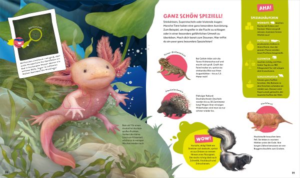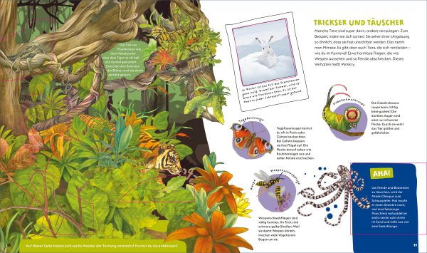 Startaufstellung bei der Olympiade der Tiere. Wer gewinnt den Sprint und welches Tier wird Meister im Turmspringen? Wir stellen rund 60 Tiere und ihre Superkräfte vor. Mit dabei: die Meister der Tarnung, die beeindruckendsten Elterntaxis, findige Täuscher und blitzschnelle Jäger. Wie orientieren sich Grottenolme ohne Augen? Wie haften Geckos an Wänden? Was macht das Bärtierchen so besonders? Mit spannenden Klappen, Suchbildern und Mitmachtipps entdecken Kinder ab 4 Jahren heimische und exotische Supertiere. Überraschend, skurril, bewundernswert und lustig!