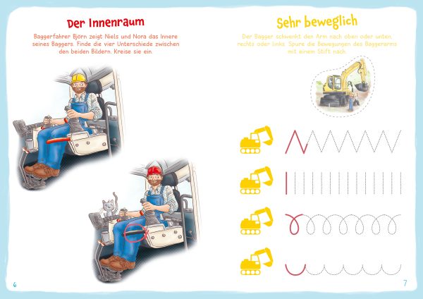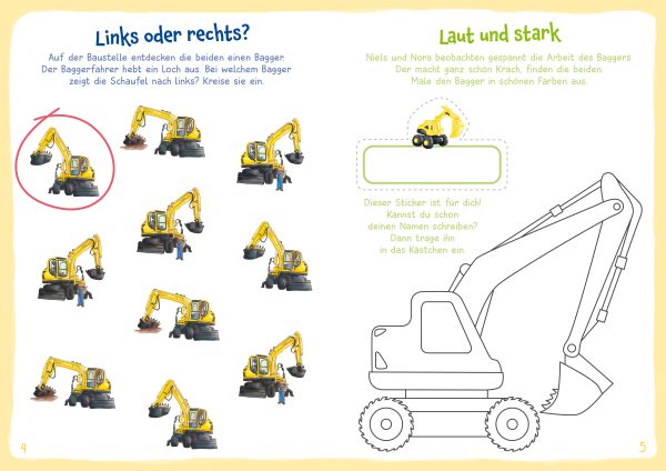 Hier wird es bunt und laut! Mit dem Heft lernen die Kinder tolle Fahrzeuge kennen: Autos, Bagger und Laster. Einfache Rätsel wie Labyrinthe, Suchbilder und Schattenrätsel sowie viele bunte Sticker liefern tolle Beschäftigung für zuhause oder unterwegs. Einige Sticker werden zum Lösen der Aufgaben benötigt, mit anderen kreieren die Kinder eigene Kunstwerke. Eine schöne Beschäftigung für Kinder ab 3 Jahren.