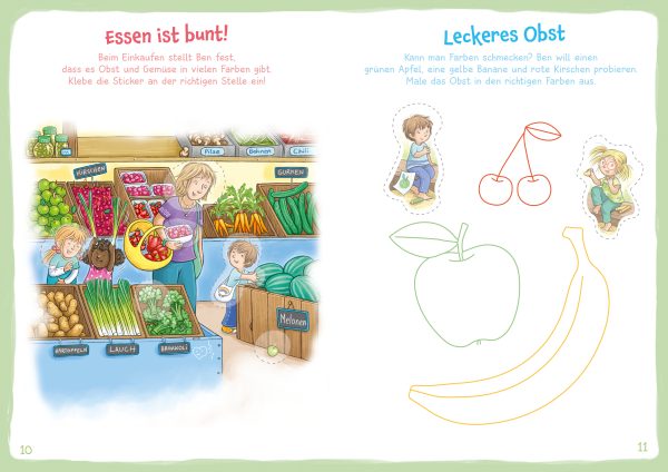 Rätsel, Ausmalbilder und bunte Sticker lassen Kinder die bunte Welt der Farben entdecken. Mit schönen Szenen aus dem Alltag der Kinder macht das Rätseln richtig Spaß. Manche Sticker werden zum Lösen der Aufgaben benötigt, andere können für eigene Kunstwerke verwendet werden. Eine tolle Beschäftigung für Kinder ab 3 Jahren.