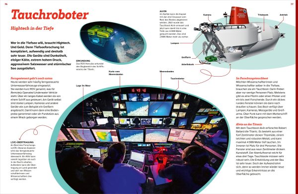 Mit beeindruckenden Bildern erkunden die Kinder das berühmte Schiffswrack. Anschaulich und packend erzählt das Buch die dramatischen Ereignisse rund um die Jungfernfahrt des Ozeanriesen – von der Konstruktion in Belfast bis zum Zusammenstoß mit dem Eisberg im Nordatlantik. Warum galt sie als unsinkbar? Wer war an Bord des Schiffs? Was geschah in der Nacht des 14. Aprils? 1985 wurde das Wrack der Titanic von Robert Ballard entdeckt. Seitdem erforschen Wissenschaftlerinnen und Wissenschaftler mit modernster Technik die Überreste des Schiffs. Tauchroboter, Spezialkameras und Tiefsee-U-Boote liefern immer neue Erkenntnisse über den Unglückshergang.